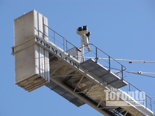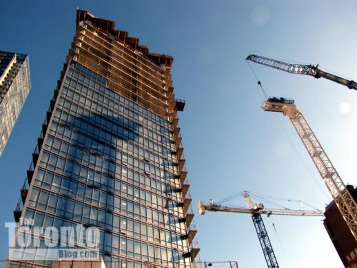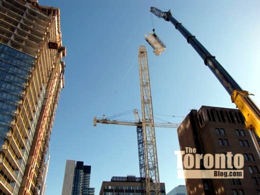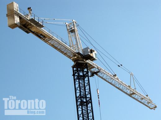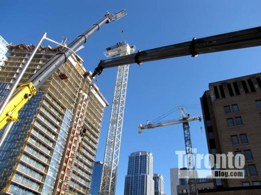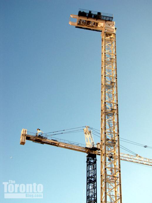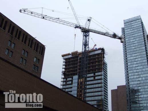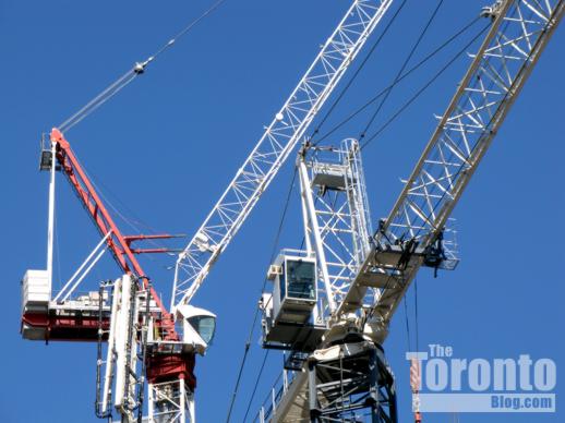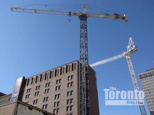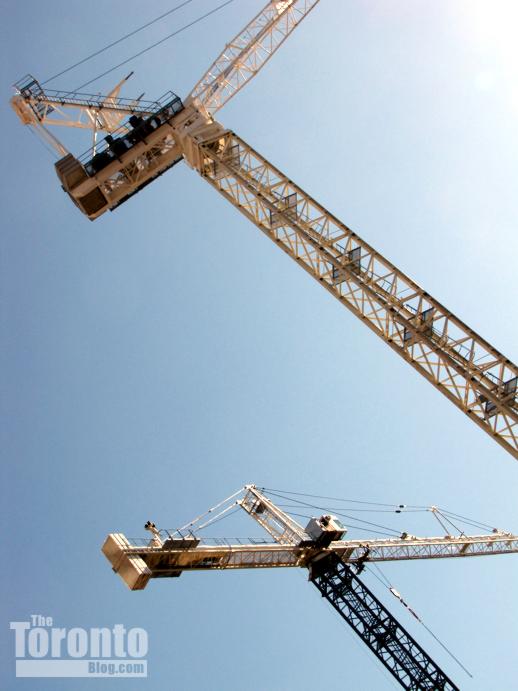 March 27 2011: The Burano Condos construction crane, left, and the crane on the south side of the Women’s College Hospital redevelopment site, right.