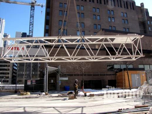 March 27 2011: With the installation of this crane at the north end of the Women’s College Hospital construction site on Saturday, there are now two cranes building a new medical facility on the east side of the hospital property