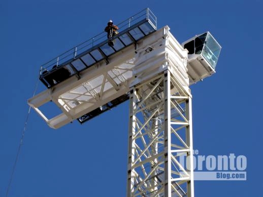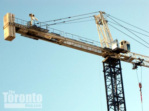 March 27 2011: The newly-installed construction crane in late afternoon sunshine