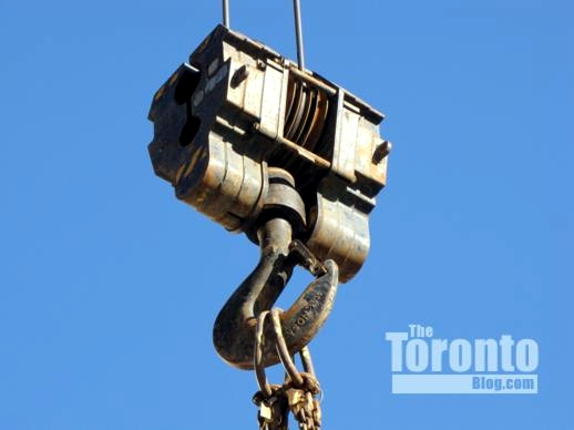 March 26 2011: The big hook used to hoist the heavy crane segments into place