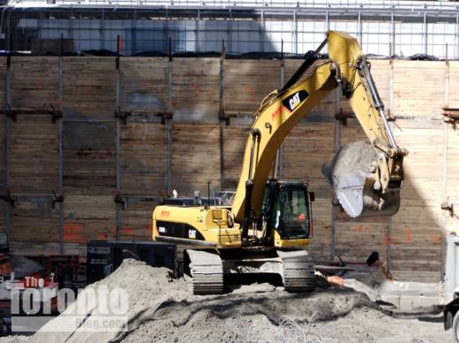 March 25 2011: Digging deeper at the north end of the site, to prepare for installation of a second construction crane the next day