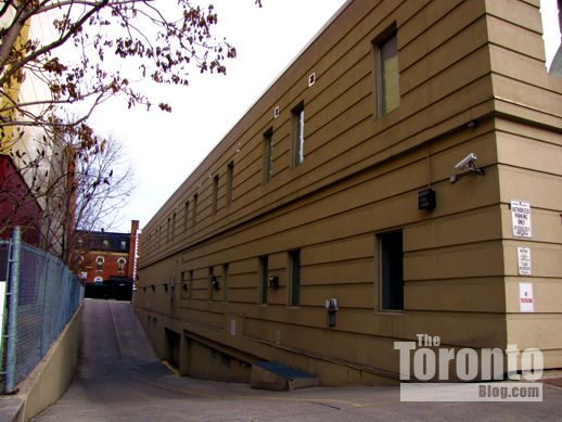 January 6 2012: This laneway on the north side of the hotel runs between Jarvis and George Streets. At left is the 10-storey Jarvis-George Co-Op.