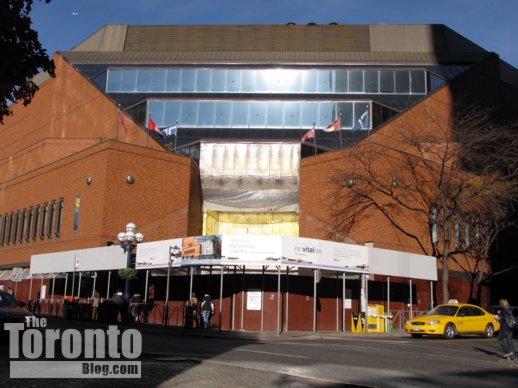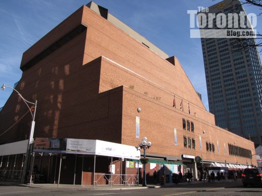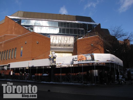I’m not a big fan of the library’s vast brick fortress-like exterior, either. Although the building looks interesting and cool from some angles, it looms over a full block of Yonge Street with a hulking, brooding presence. I’ve never enjoyed walking past what feels to me like a prison for books; at street level, the facade is unwelcoming — dark and dreary, with nothing inviting to encourage passersby to enter and explore the literary treasures inside. But I’m hoping that will soon change with ambitious renovations currently underway to the entrance and facade — part of a five-year, $34-million “revitalization” program that’s supposed to finish in 2012.